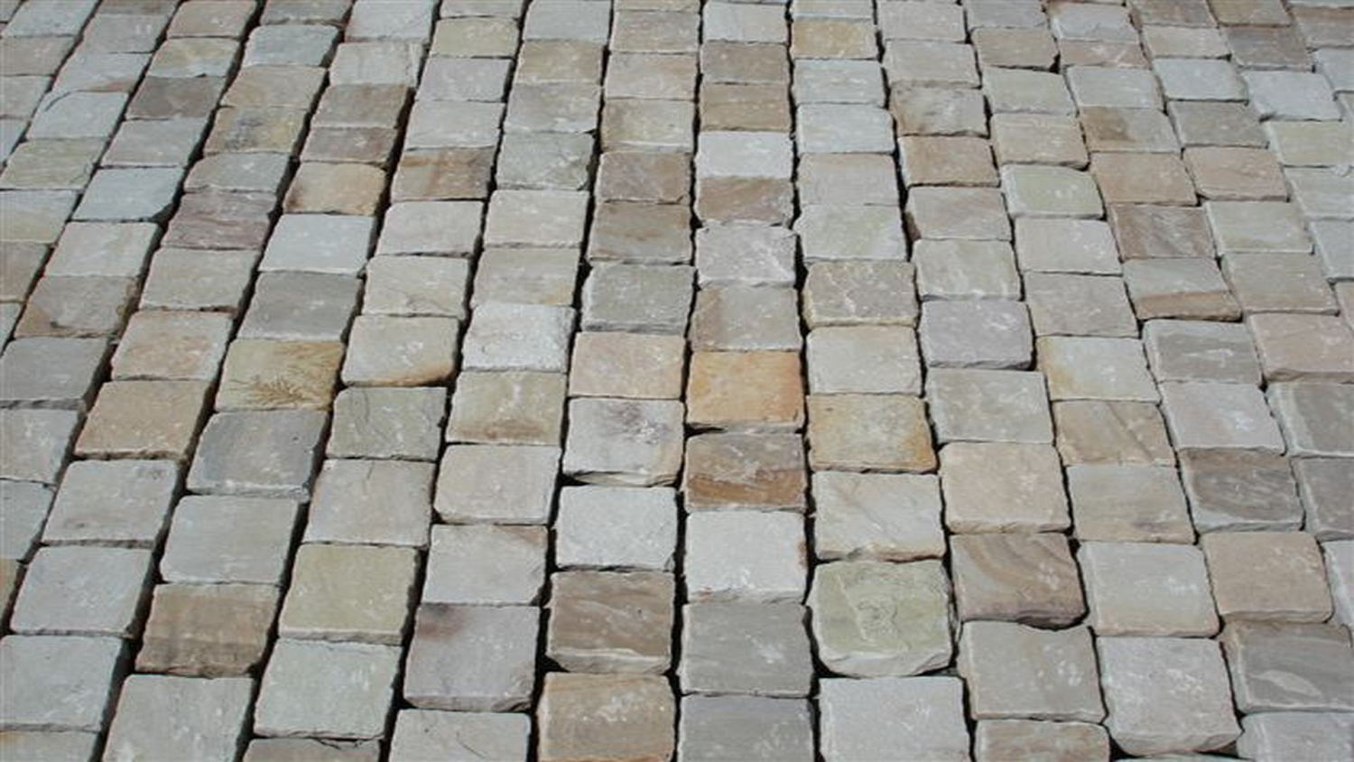 Farbe: Gelb Rötlich Gestein: Granit Bearbeitung: Gespalten 1 Tonne =  ca. 4,5 m2 1 Big Bag = 1 Tonne = ca. 400 Stk. 1 lfm. = ca. 10 Stk. Preis inkl. Big Bag + Befüllung und Einweg-Palette