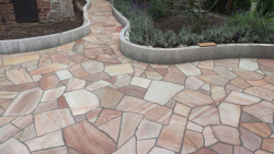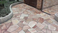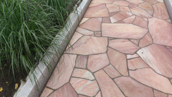 Stärke  2,5 - 4 cm  4 - 7 Stück / m² Gestein: Quarzit  Oberfläche: spaltrauh Farbe: Rosa mit leichte helle und graue schattierungen Herkunftsland: Brasilien