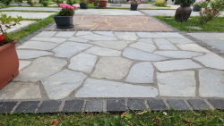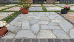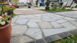 Polygonalplatten Kavala Terra Grey oder Hellas Quarzit als terrassenplatten sind optimal für die Gestaltung der Terrasse oder Gehwege auf ihren Garten oder Haushof.